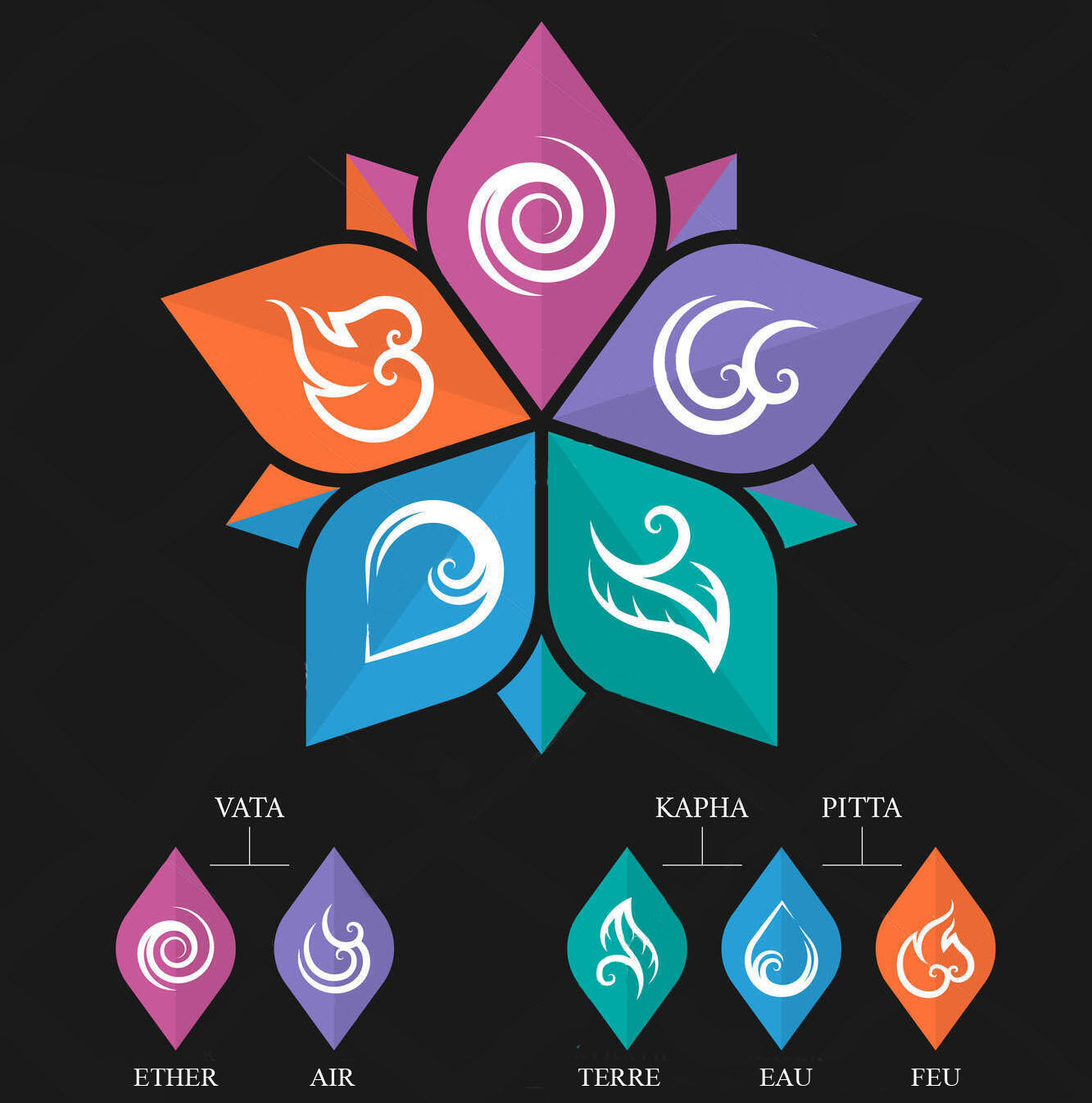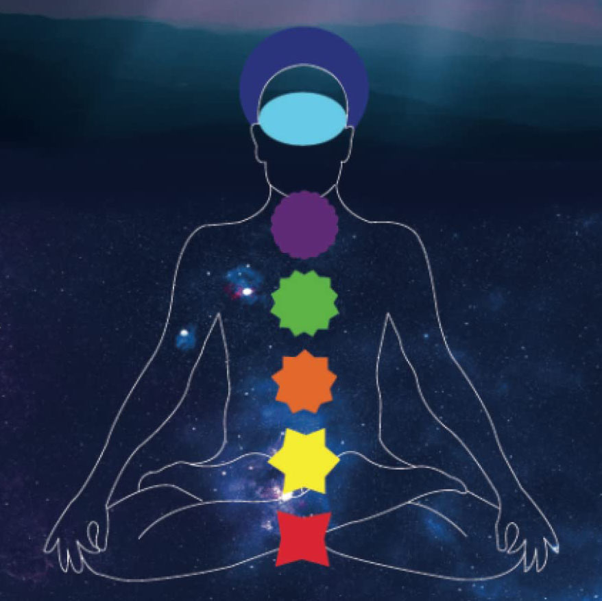 Voici les 7 chakras principaux de bas en haut :